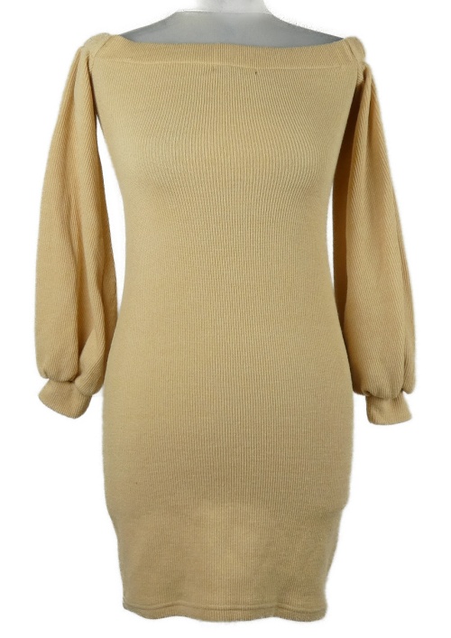 Dámske béžové svetrové šaty s lodičkovým výstřihem Shein