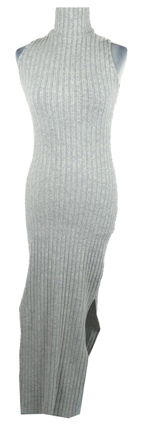 Dámske sivé rebrované midi šaty s rolákom Shein