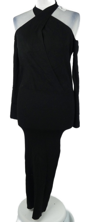 Nové - Dámske čierne úpletové dlhé šaty s volnými rameny Reiss