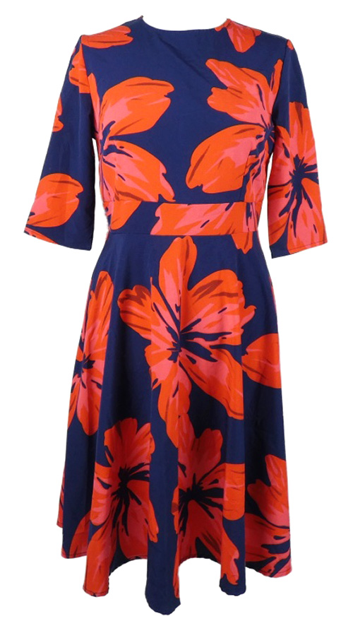 Nové - Dámske tmavomodro-jahodové kvetované šaty