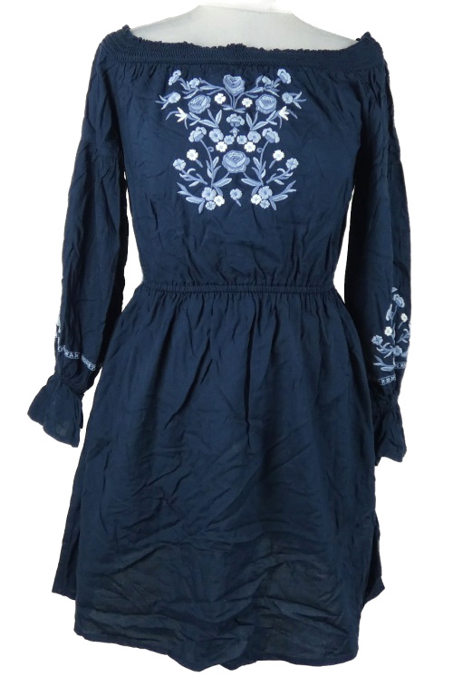 Dámske tmavomodré šaty s kvietkami a lodičkovým výstřihem Hollister