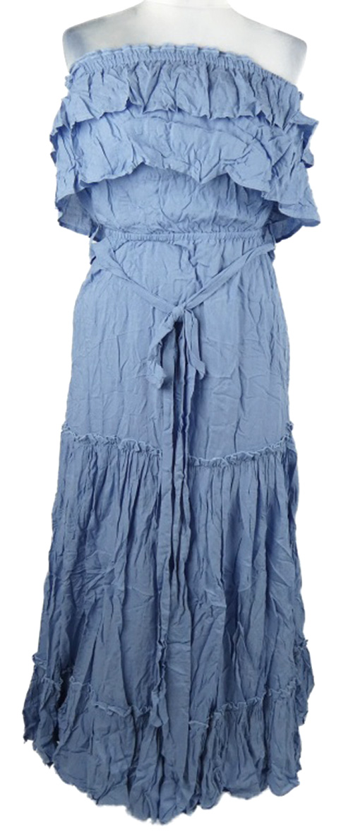 Dámské světlemodré vzorované midi šaty bez ramínek s opaskom Fresha