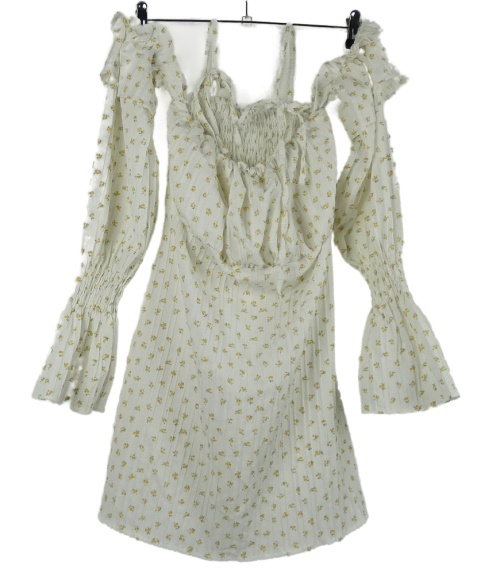 Dámska biela plisovaná šatová tunika s kvietkami a volnými rameny