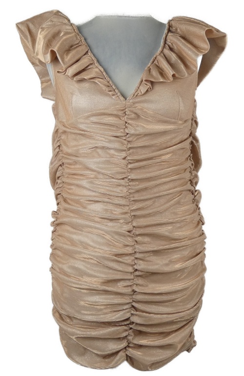 Dámské světlerůžové třpytivé řasené minišaty s volánikmi
