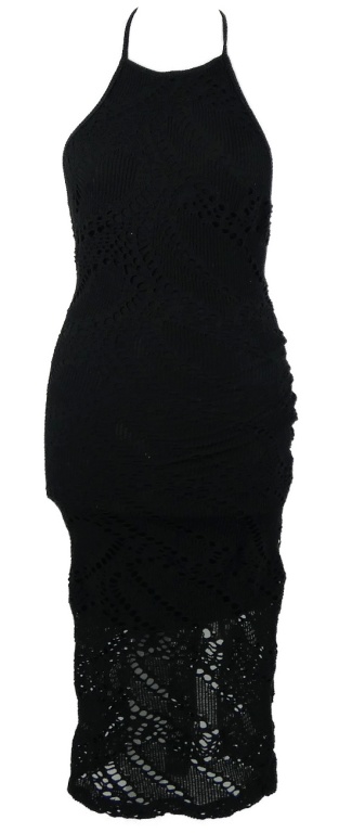 Nové - Dámske čierne perforované midi šaty Bershka