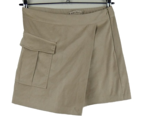 Dámska béžová semišová skort sukňa s vreckom Amisu