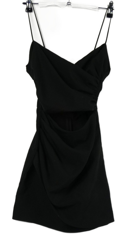 Dámske čierne řasené koktejlové šaty s prestrihom Zara