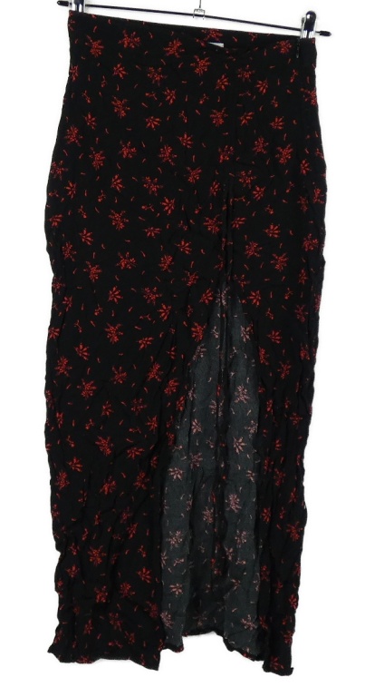 Dámska čierno-červená kvietkovana midi sukňa s rozparkem