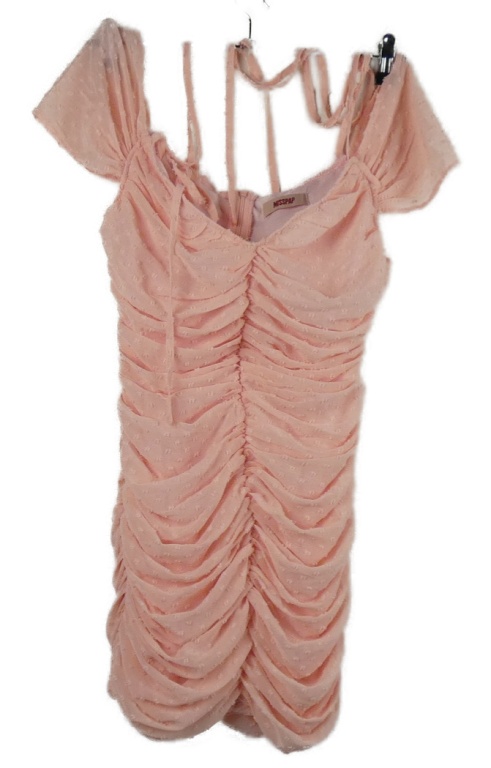 Dámské světlerůžové vzorované šifonové řasené minišaty MissPap