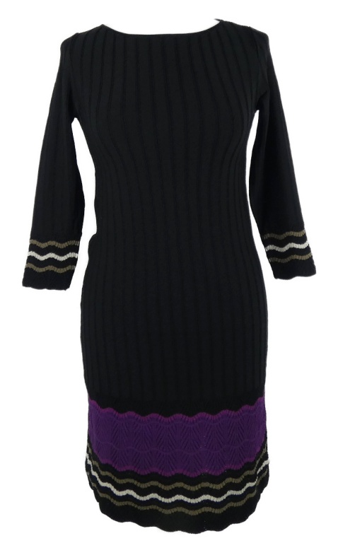 Dámske bielo-purpurové svetrové šaty s volánikmi Nine Vest