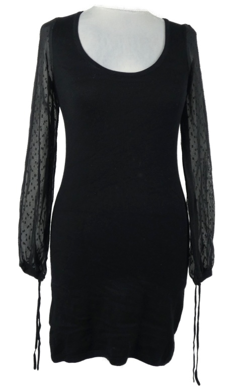 Dámske čierne pletené šaty s šifónovymi vzorovanymi rukávy Mango