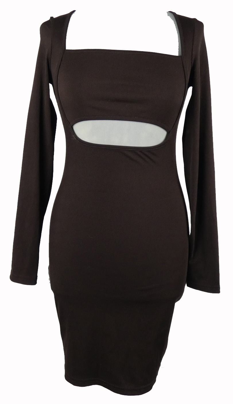 Dámske hnedé rebrované šaty s prestrihom Shein