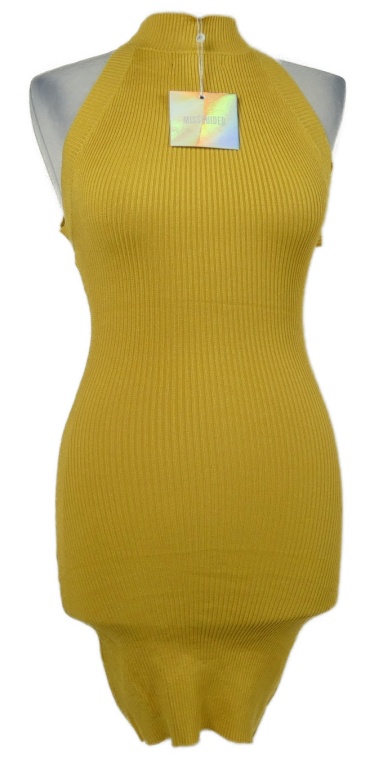 Nové - Dámské okrové žebrované pletené minišaty MissGuided