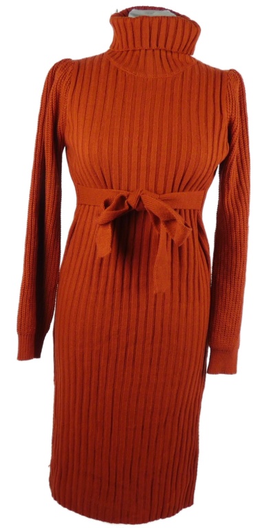 Dámske červené rebrované svetrové šaty s opaskom a rolákom Shein