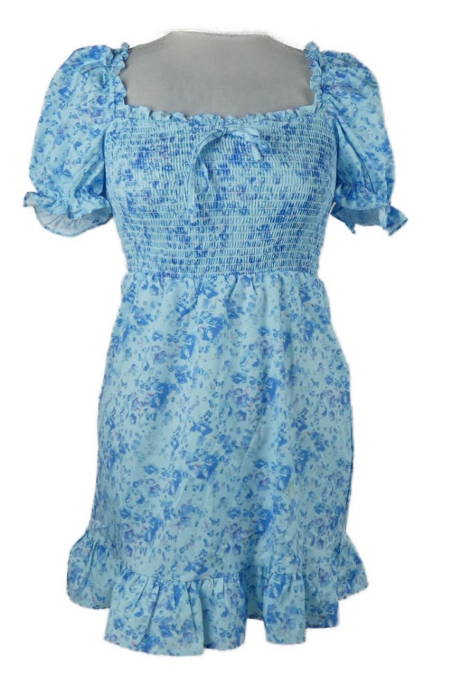 Dámske svetlomodré kvietkovane žabičkové šaty Shein