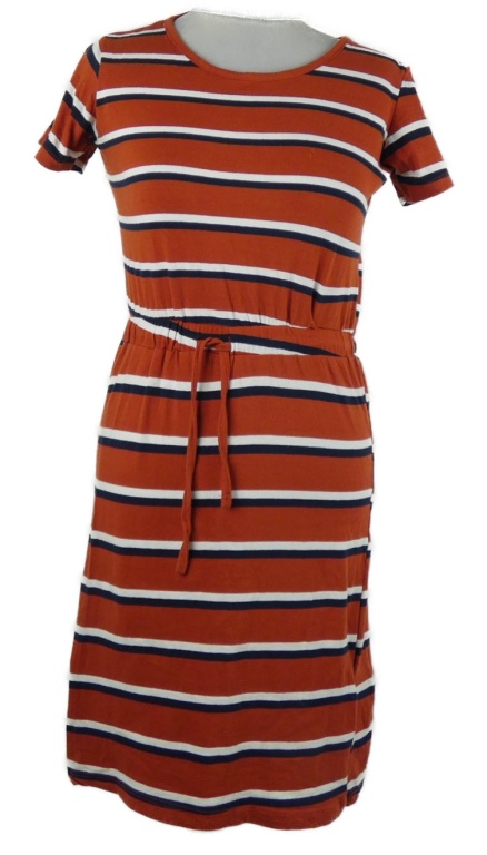 Dámske tehlovo-tmavomodro-biele pruhované šaty so stahováním Ever.me