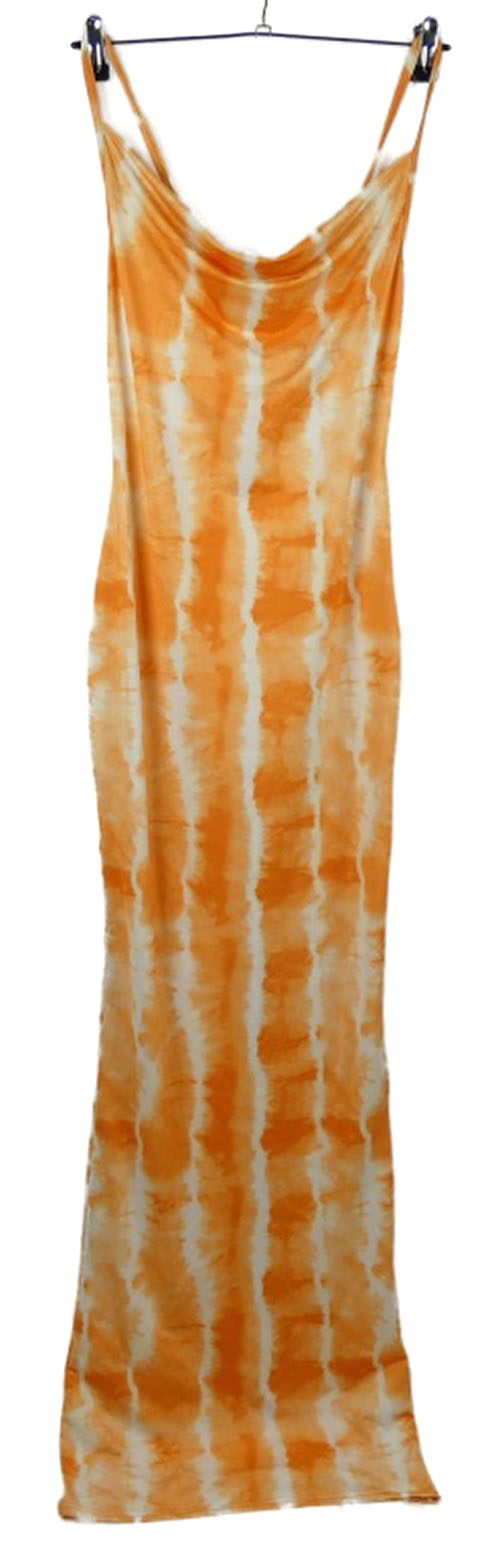 Dámske oranžovo-biele vzorované batikované dlhé šaty Pretty Little Thing
