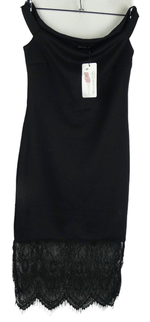 • Nové - Dámske čierne elastické šaty s lodičkovým výstřihem a krajkovým lemem Gossip