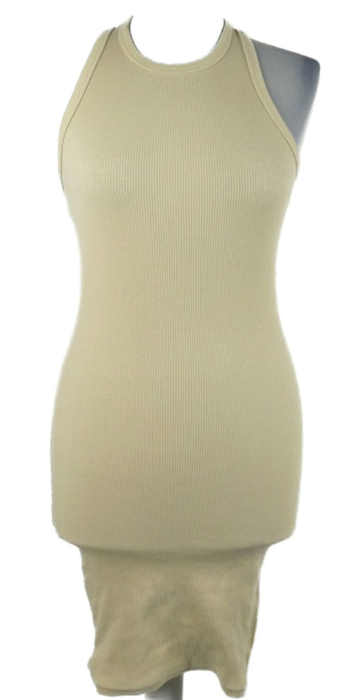 Dámske béžové rebrované elastické šaty FB Sister