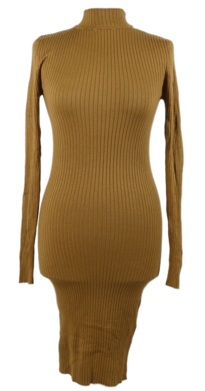 Dámske béžové rebrované pletené šaty so stojačikom Amisu