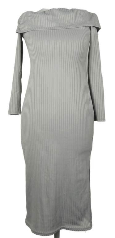 Dámske sivé rebrované midi šaty s lodičkovým výstřihem PrettyLittle Thing