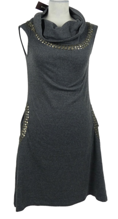 Nové - Dámske sivé pletené šaty s cvokmi a komínovým golierom Layers