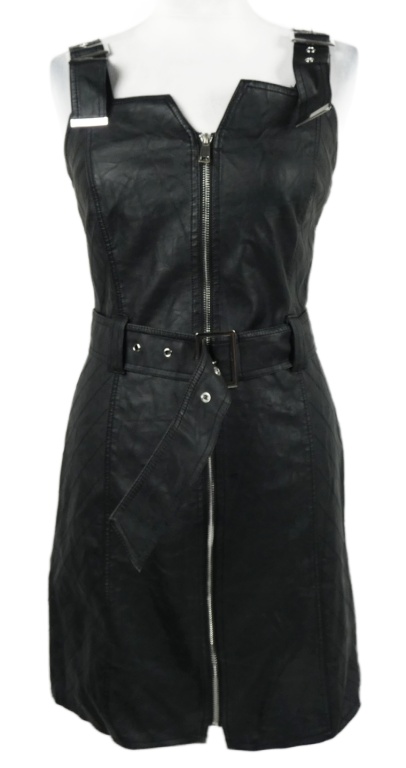 Dámske čierne koženkové prepínaci šaty s opaskom River Island