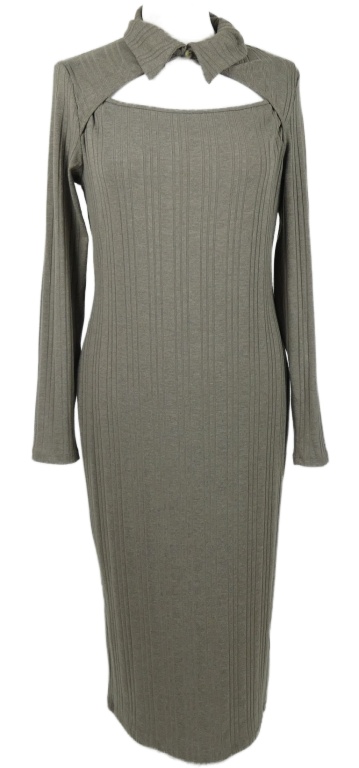 Dámske piesková é rebrované midi šaty s golierikom Primark