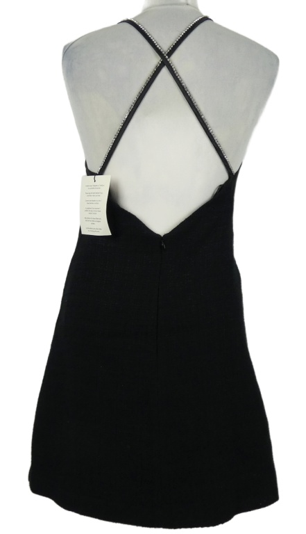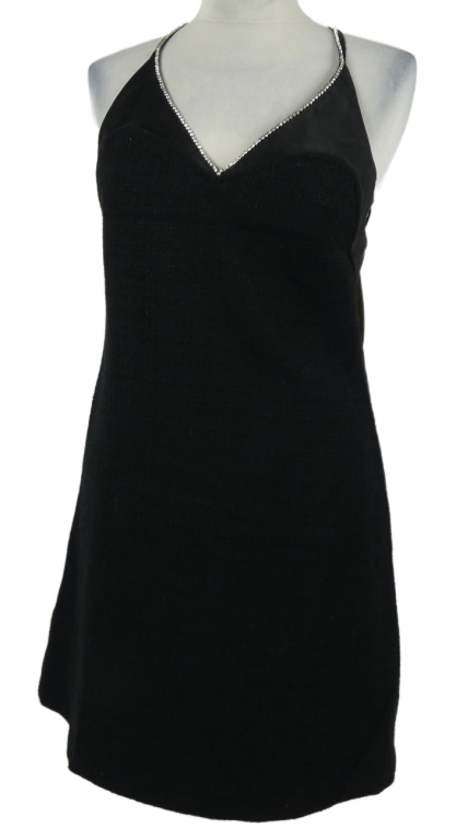 Dámske čierne šaty s kamienkami a volnými zády Sandro