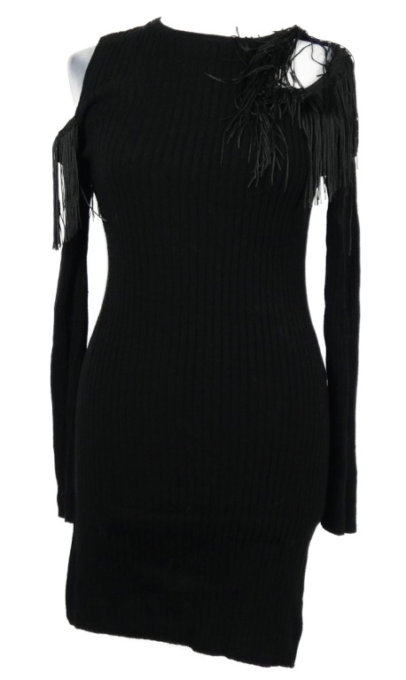 Nové - Dámske čierne rebrované svetrové šaty s strapcemi Asos