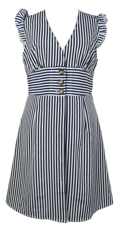 Dámske tmavomodro-biele pruhované košeľové šaty