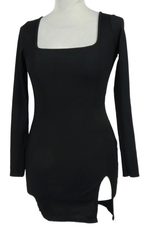 Dámské černé žebrované minišaty s rozparkem PrettyLittle Thing