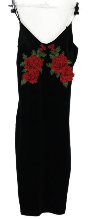 Dámske čierne zamatové šaty s červenymi kvety Glamour