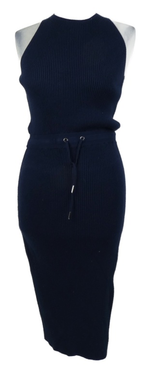 Dámske tmavomodré rebrované svetrové midi šaty so stahováním Reiss