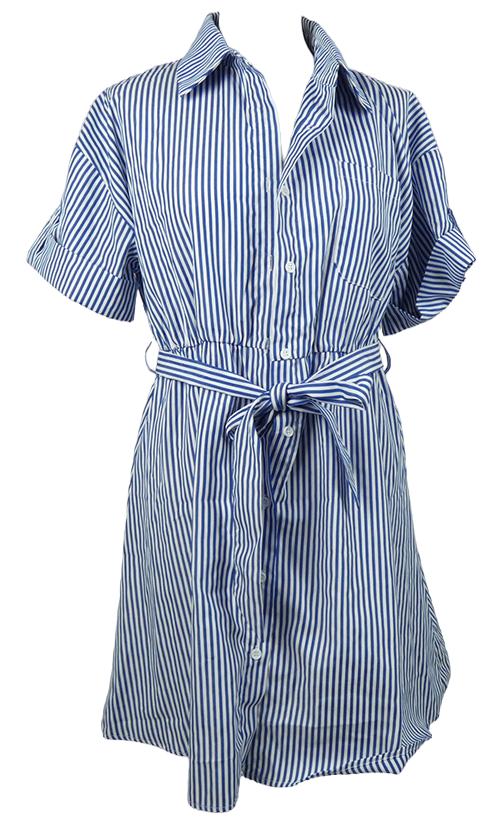 Dámske modro-biele pruhované košeľové šaty s opaskom Shein