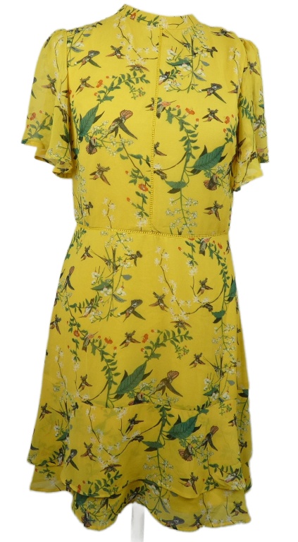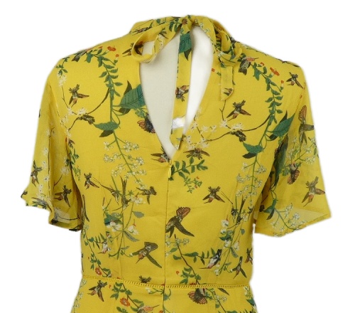 Dámske žlté kvietkovane šifónové šaty s kolibříky Oasis