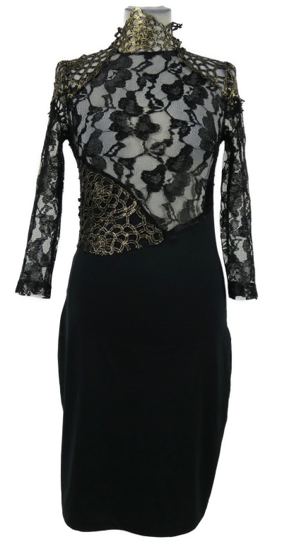 Dámske čierno-béžové púzdrové koktejlové šaty s krajkovým živůtkem