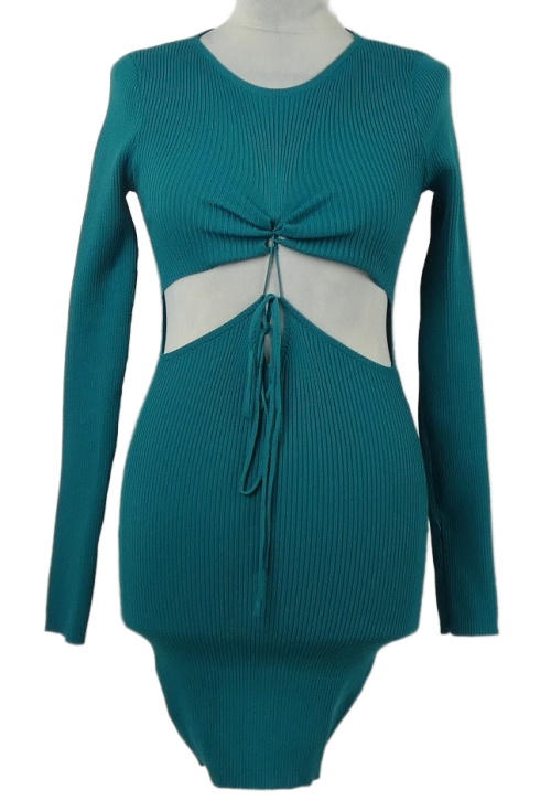 Dámske petrolejové rebrované úpletová šaty s prestrihom PrettyLittle Thing