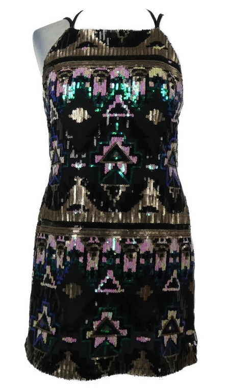 Dámské černo-barevné vzorované flitrové minišaty s volnými zády Glamorous