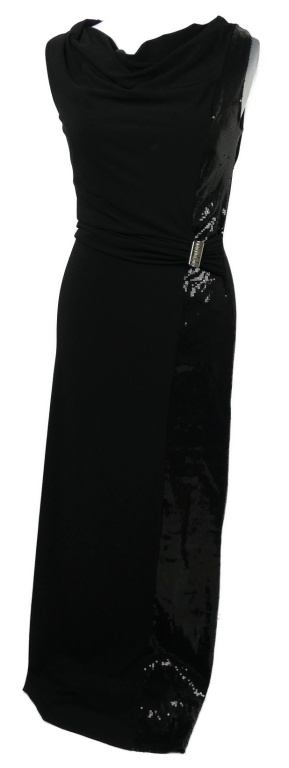 Dámske čierne plesové dlhé šaty so sponou a flitrami Promiss
