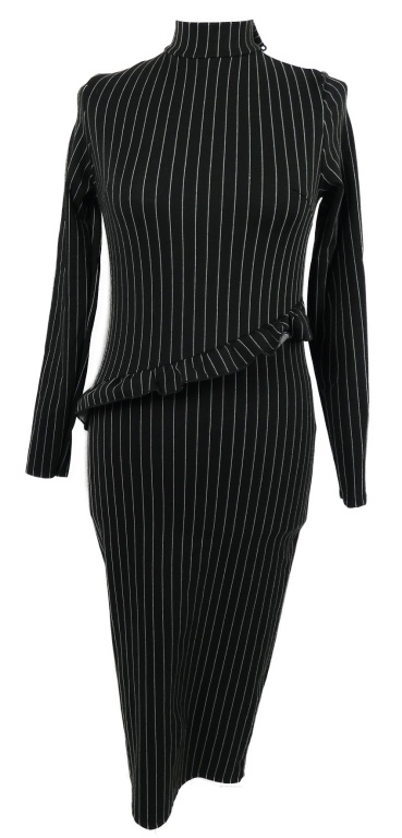 Dámske čierno-biele pruhované šaty s opaskom s volánikom