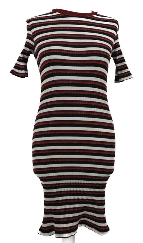 Dámske vínovo-čierno-biele pruhované rebrované šaty Primark