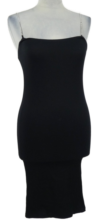 Dámske čierne rebrované elastické šaty so štrasovými ramínky Bershka