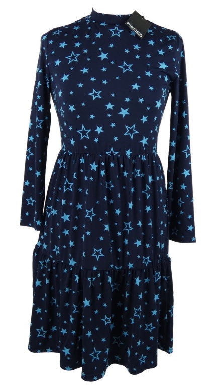 Nové - Dámske tmavomodré hviezdičkované šaty Pieces