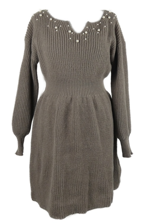 Dámske svetlovínový é svetrové šaty s perličkami Shein