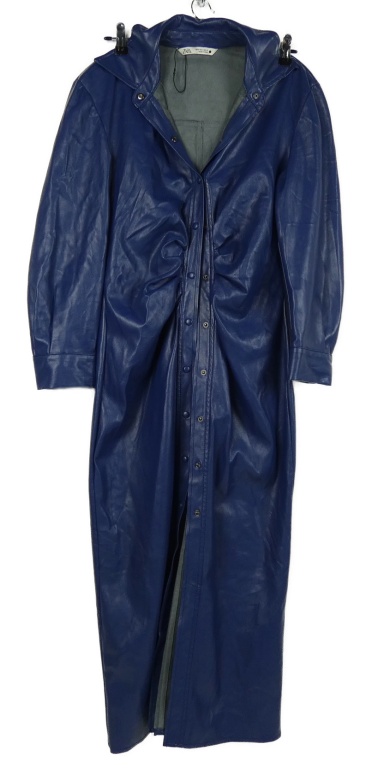 Dámske tmavomodré koženkové košeľové midi šaty Zara