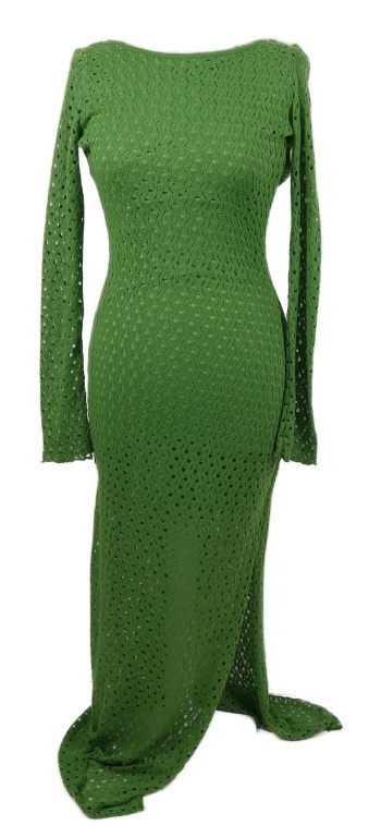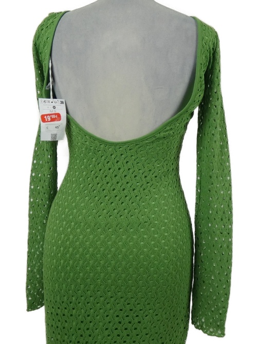 Nové - Dámske limetkové pletené perforované dlhé šaty Berhska