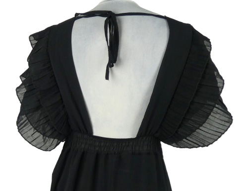 Nové - Dámske čierne šifónové šaty s nařasenými rukávy a hlubokým výstřihem