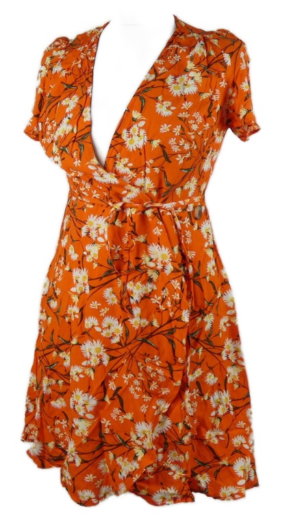 Dámske oranžové zavinovací kvetované šaty Primark