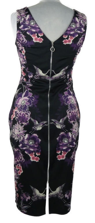 Dámske čierno-fialové kvetované púzdrové šaty s volavkami Dorothy Perkins